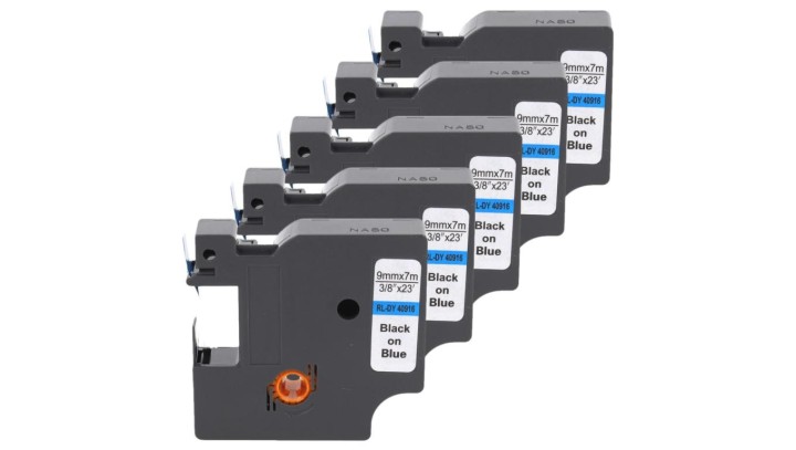 Taśma 5x D1 40916 do drukarki DYMO 9mm 7m niebieska taśma czarny nadruk /5szt./