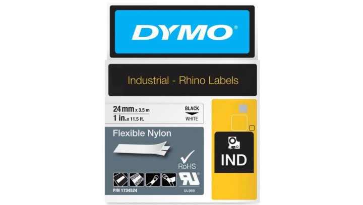 Taśma DYMO IND nylonowa elastyczna 24mm x 3,5m (biała / czarny nadruk) RHINO Industrial 1734524 / S0773840 ORYGINALNA