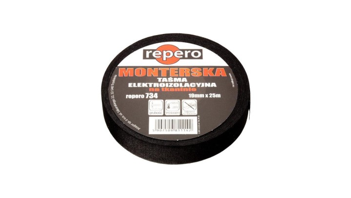 Taśma izolacyjna monterska na tkaninie 19mm x 25m Repero 734 czarna