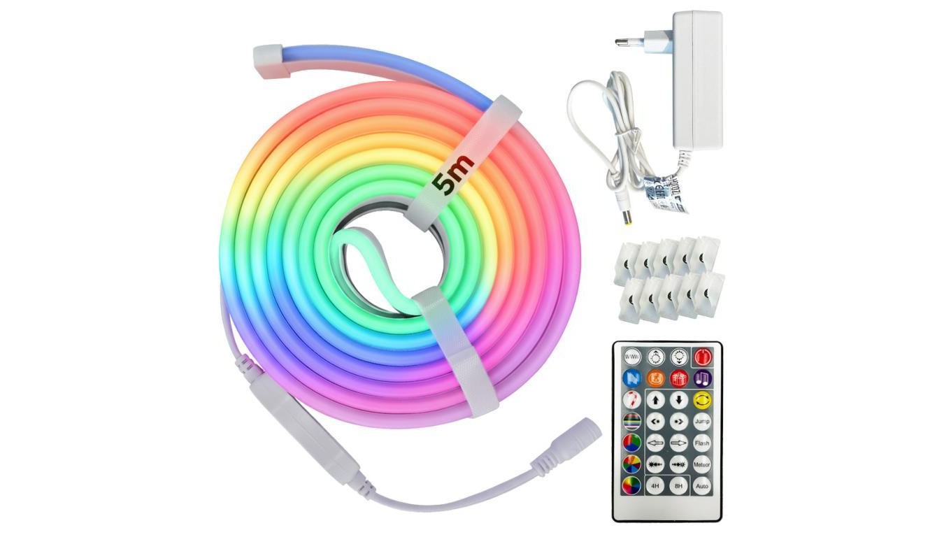 Taśma LED NEON RGB, 12V, 10W/m, 200lm/m, IP65, ze sterownikiem, zasilaczem i pilotem, rolka 5m, DIGITAL-5 HOROZ