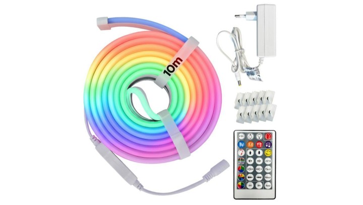 Taśma LED RGB NEON zestaw, 24V, 10W/m, 200lm/m, IP65, ze sterownikiem, zasilaczem i pilotem, rolka 10m, DIGITAL-10 HOROZ
