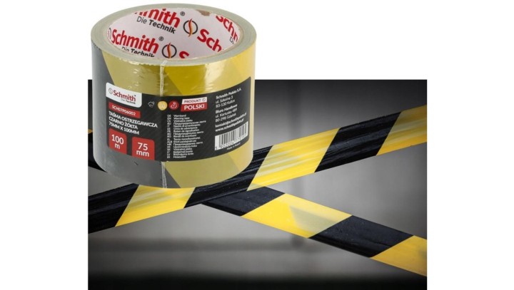 Taśma ostrzegawcza żółto-czarna foliowa budowlana BHP 75mm 100m SCHMITH