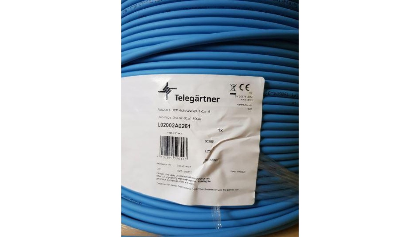 Telegärtner Kabel F/UTP Kat.5 drut 4x2xAWG24/1 LSOH 500m niebieski