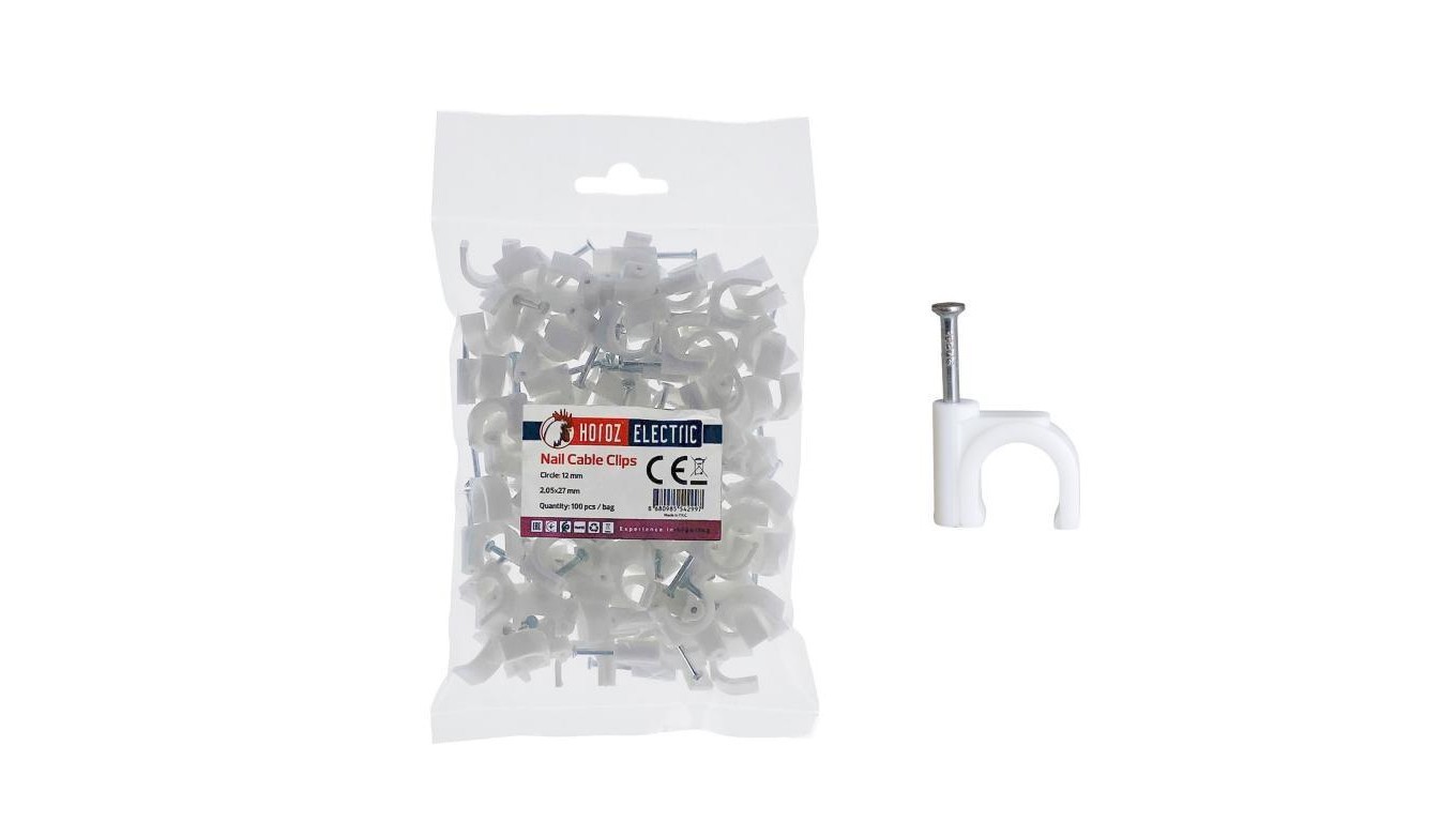 Uchwyt kablowy okrągły typu FLOP fi 12mm biały (opk. 100 szt.) HOROZ