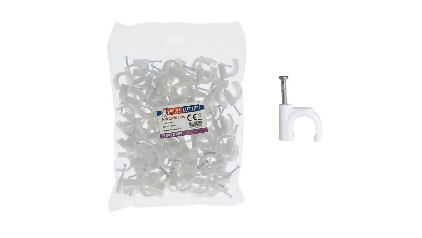 Uchwyt kablowy okrągły typu FLOP fi 18mm biały (opk. 100 szt.) HOROZ