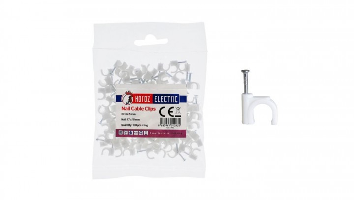 Uchwyt kablowy okrągły typu FLOP fi 5mm biały (opk. 100 szt.) HOROZ