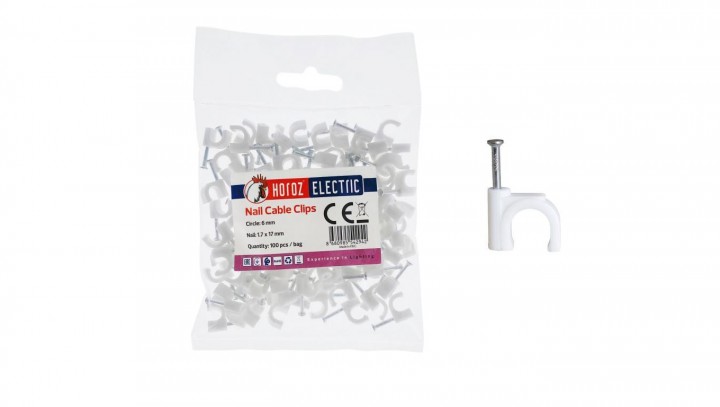 Uchwyt kablowy okrągły typu FLOP fi 6mm biały (opk. 100 szt.) HOROZ