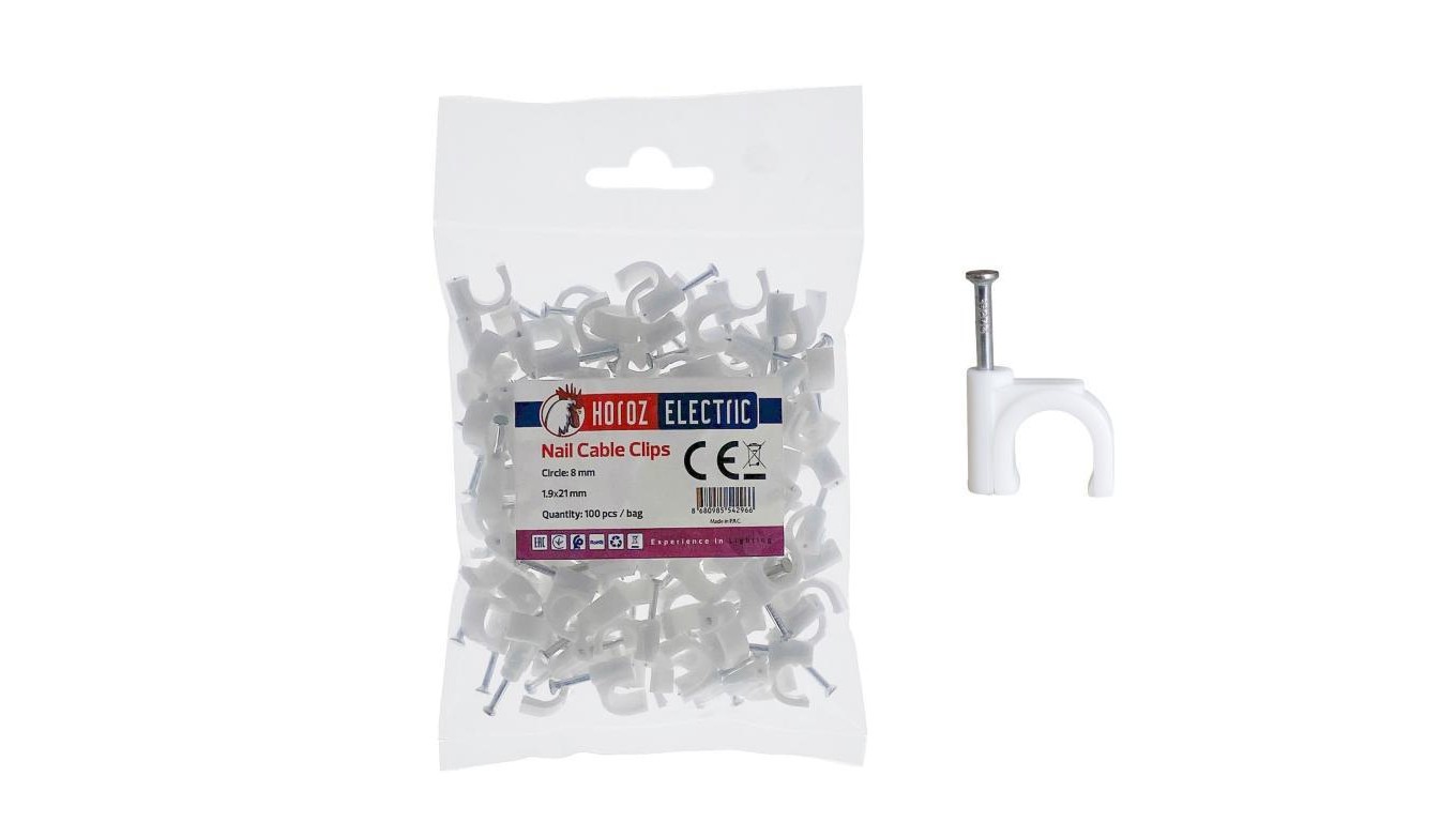 Uchwyt kablowy okrągły typu FLOP fi 8mm biały (opk. 100 szt.) HOROZ