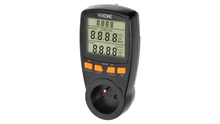 Watomierz cyfrowy LCD gniazdkowy licznik zużycia energii elektrycznej (do gniazdek typu 2P+Z) czarny VIRONE