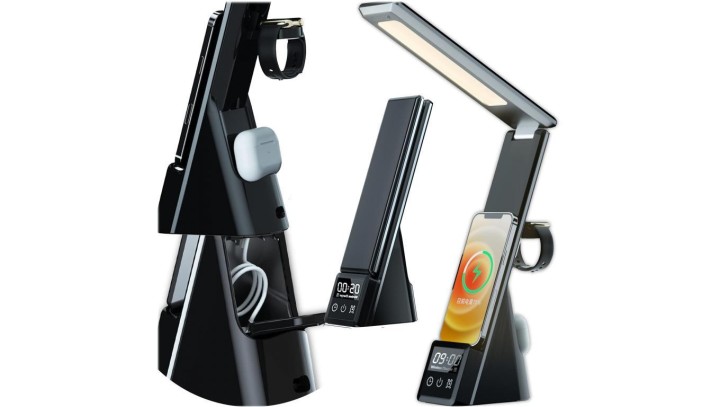 Wielofunkcyjna lampka biurkowa LED z ładowaniem QI bezprzewodowym indukcyjnym i wyświetlaczem