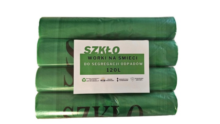 Worki na śmieci brązowe 120l do segregacji odpadów nadruk SZKŁO op. 100szt.
