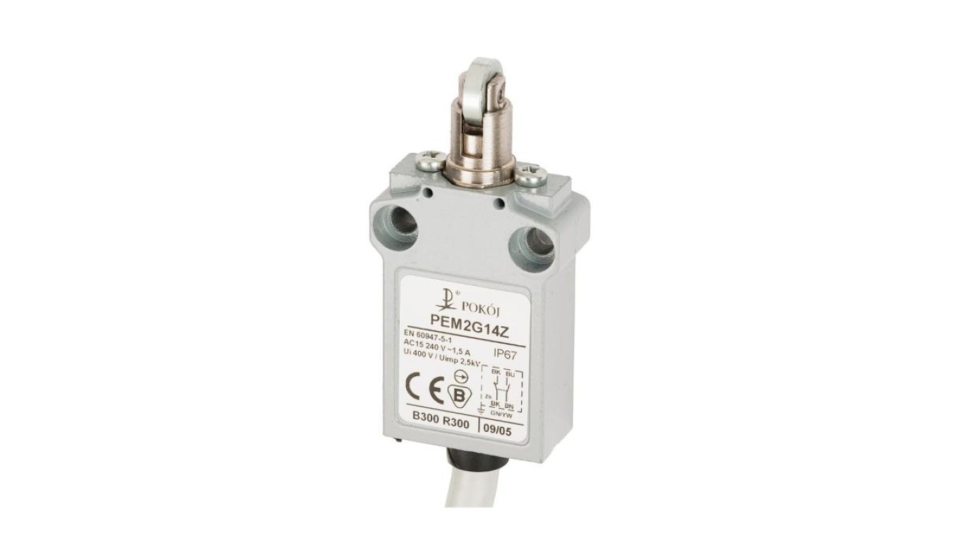 Wyłącznik krańcowy 1R 1Z wolnoprzełączający popychacz metalowy z rolką stalową prostopadłą Ø12 PEM2G14X A37-B85X