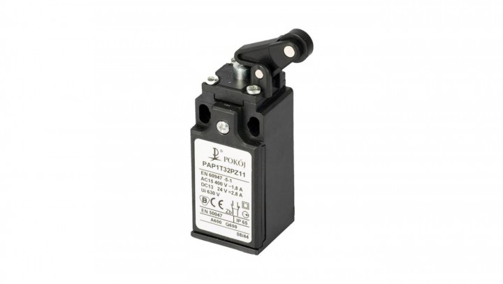 Wyłącznik krańcowy 1R 2Z wolnoprzełączający popychacz stalowy dźwignia pionowa z rolką Ø12,5 PAP1T32PX21 A37-1066