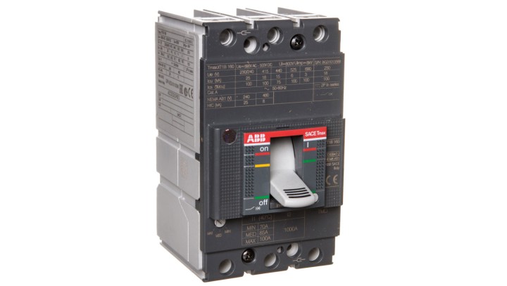 Wyłącznik mocy 3P 100A 18kA XT1B 160 z wyzwalaczem TMD 100-1000 3p F F 1SDA066807R1
