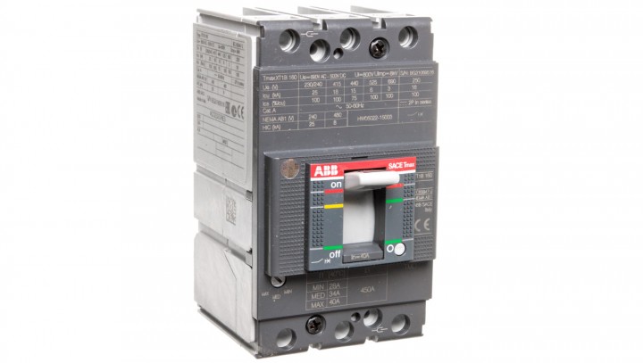 Wyłącznik mocy 3P 40A 18kA XT1B 160 z wyzwalaczem TMD 40-450 3p F F 1SDA066803R1