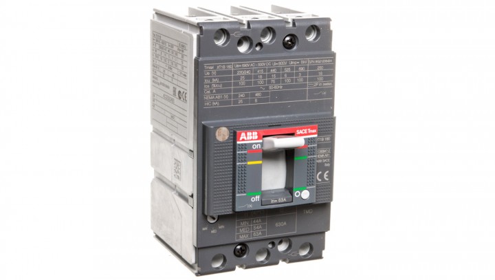 Wyłącznik mocy 3P 63A 18kA XT1B 160 z wyzwalaczem TMD 63-630 3p F F 1SDA066805R1