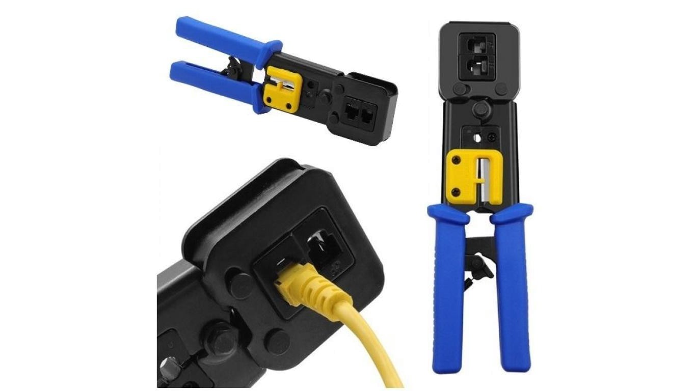 Zaciskarka przelotowych wtyków modularnych RJ45 (8p8c) i telefonicznych RJ12 (6p6c) RJ11 (6p4c)