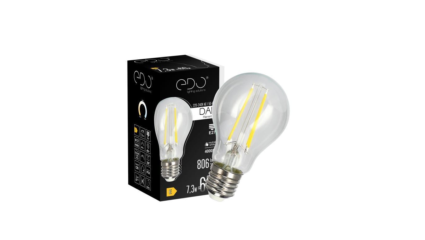 Żarówka dekoracyjna DARI LED Filament 7,3W, E27, 4000K, 806lm, 230V, CLEAR A60, EDO777629 EDO