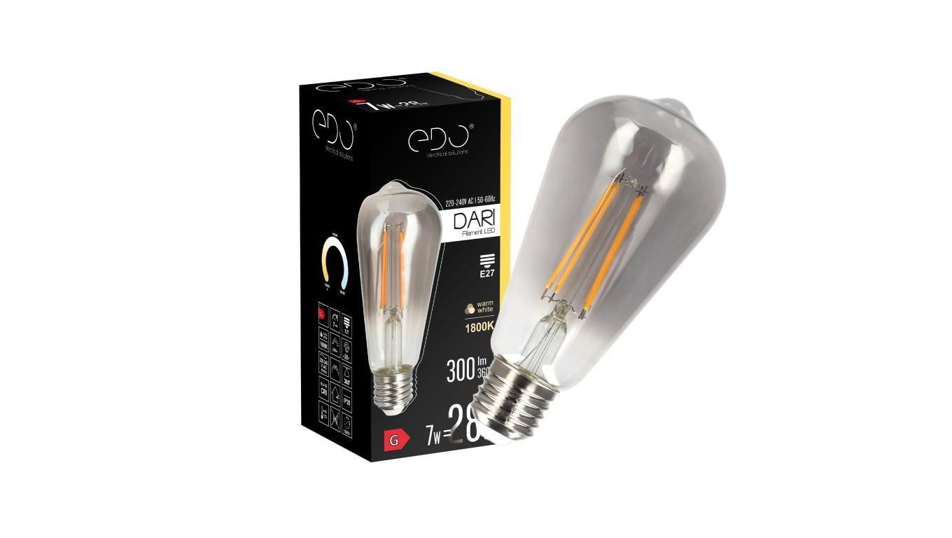 Żarówka dekoracyjna DARI LED Filament 7W, E27, 1800K, 300 lm, 230V, SMOKE ST64, EDO777623 EDO