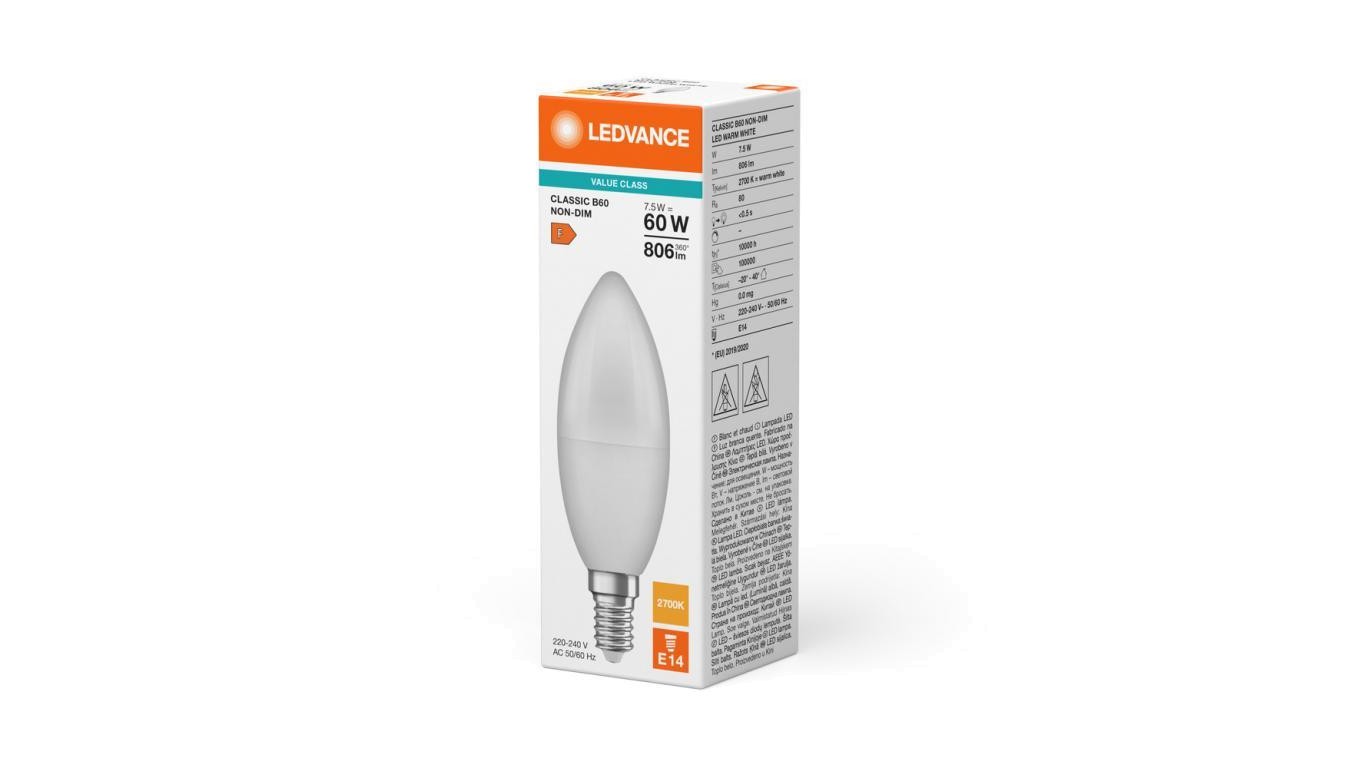 Żarówka LED B39 E14 7.5W = 60W 806lm 2700K Ciepła Biała LEDVANCE
