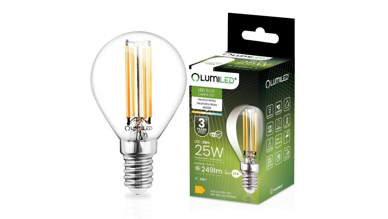 Żarówka LED E14 Kulka P45 2W = 25W 249lm 4000K Neutralna 360 FILAMENT LUMILED