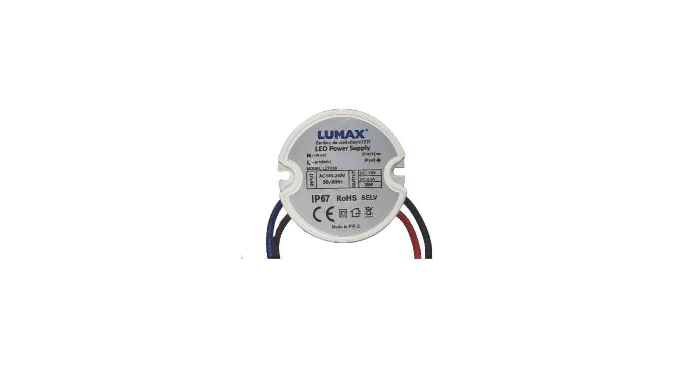 Zasilacz do oświetlenia LED montażowy IP44 30W, 12V, 2.5A, 50x22mm - do Puszki