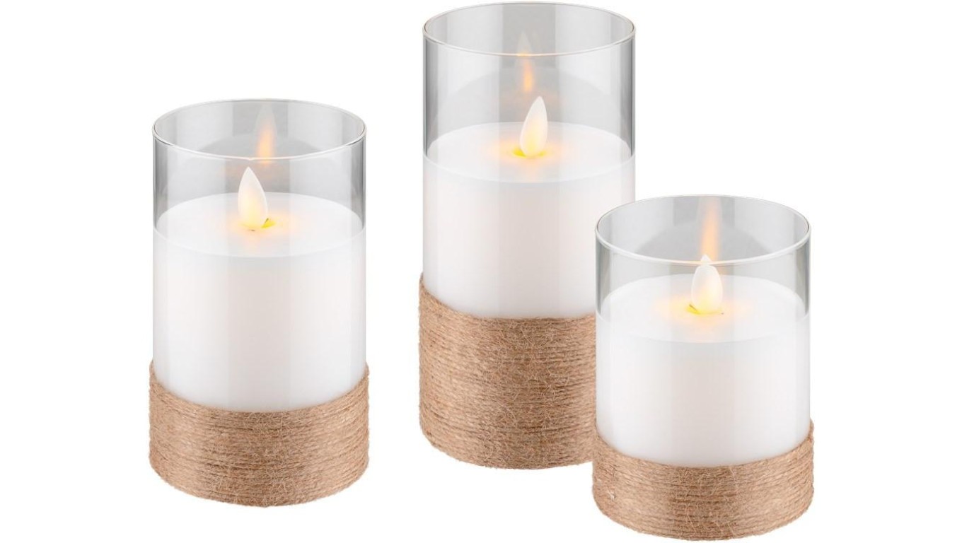 Zestaw 3 świec LED z prawdziwego wosku w szklance, białe