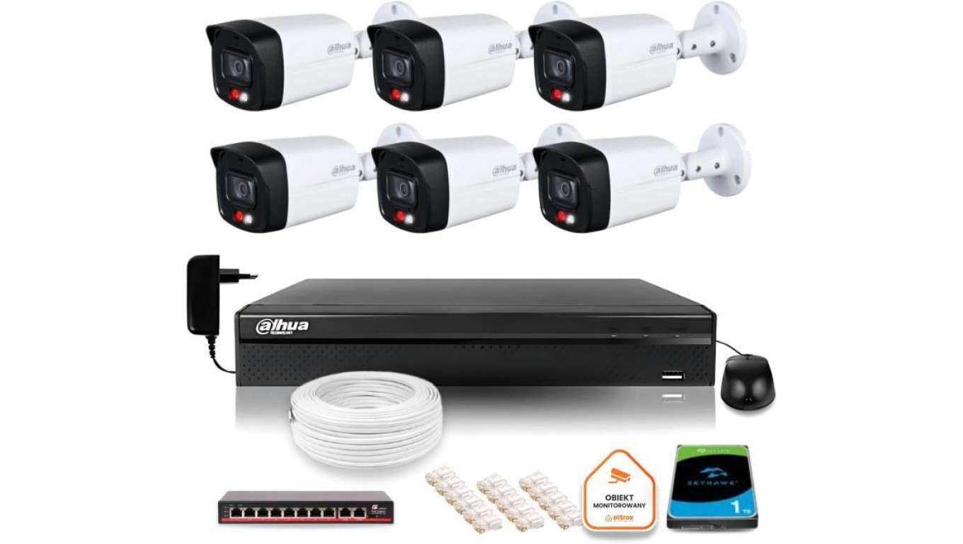 ZESTAW 6 Kamery IP Dahua 8mpx IPC-HFW1839TC-A-IL-0280B-S6 + DYSK 1TB