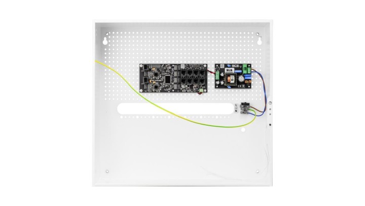 Obudowa BCS-H, Materiał obudowy - blacha stalowa 0,8 mm, Obudowa malowana proszkowo na kolor biały, Zamontowany tamper otwarcia, Systemowe otworowanie 4,8 mm w rastrze 10,8 mm, Dystans do ściany, Otwory montażowe 6 mm