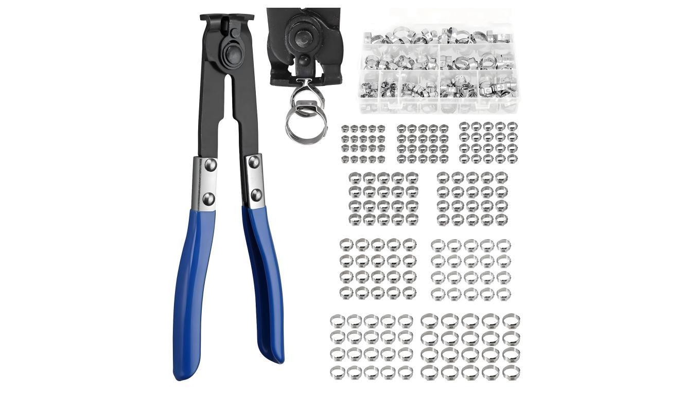 Zestaw komplet szczypce do opasek zaciskowych wraz z zestawem 200 opasek Oetiker 5,8-21mm
