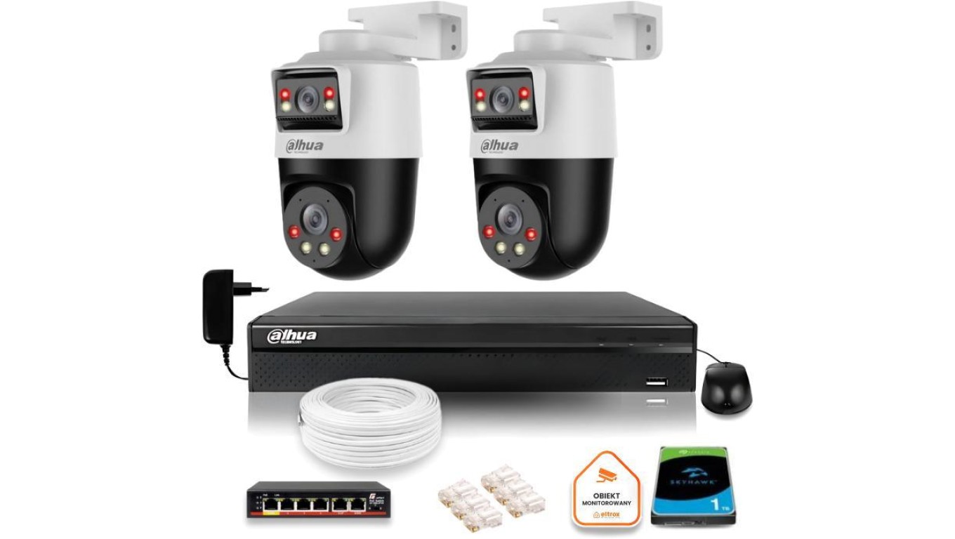 Zestaw monitoringu IP Dahua 2 kamery obrotowe 2MP+2MP z dyskiem 1TB