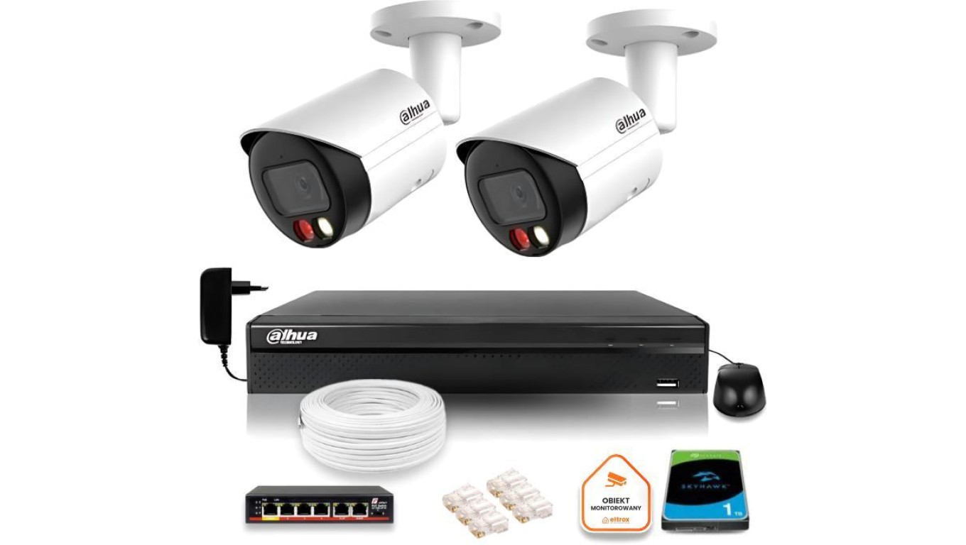 Zestaw monitoringu IP Dahua 8mpx 4K 2 kamery IPC-HFW2849S-S-IL z dyskiem 1TB