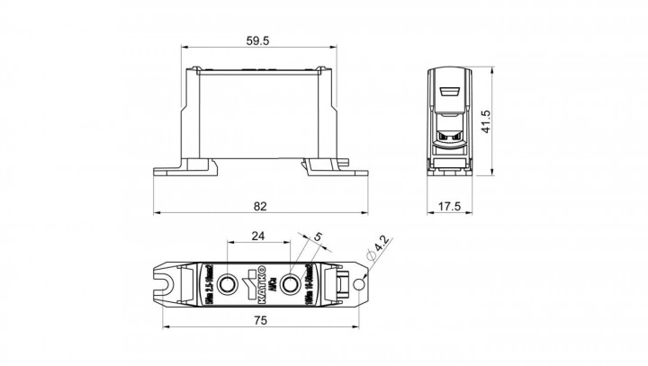 Złączka szynowa 1-torowa 50mm2 szara KATKO KL1X50