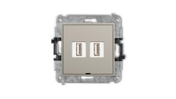 MINI Mechanizm gniazda podwójnego 2xUSB A-A 2.0, bez pola opisowego taupe 60MGUSBBO-2